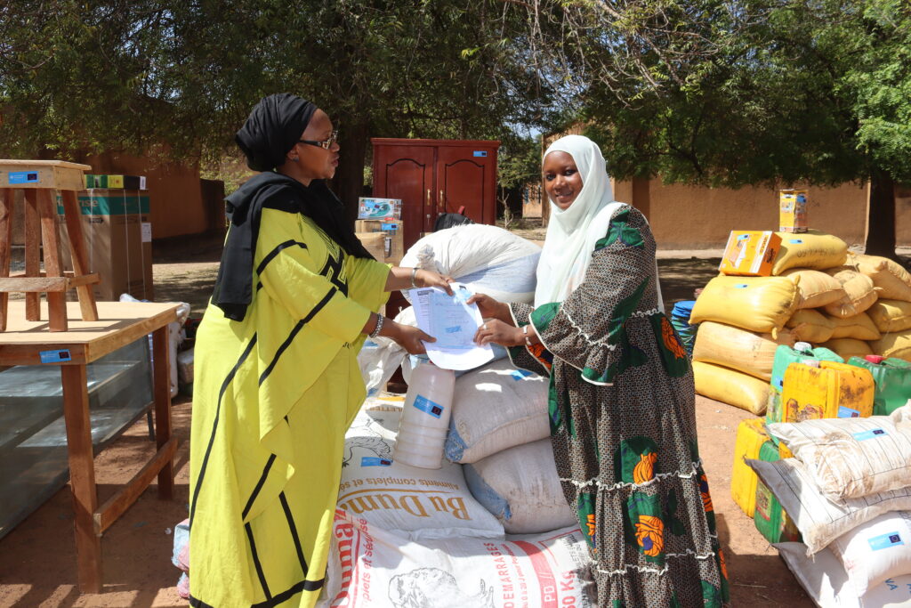 Les bénéficiaires ont reçu des équipements correspondant à leurs activités : coupe-couture, transformation agroalimentaire, saponification, élevage, et d’autres métiers générateurs de revenus.